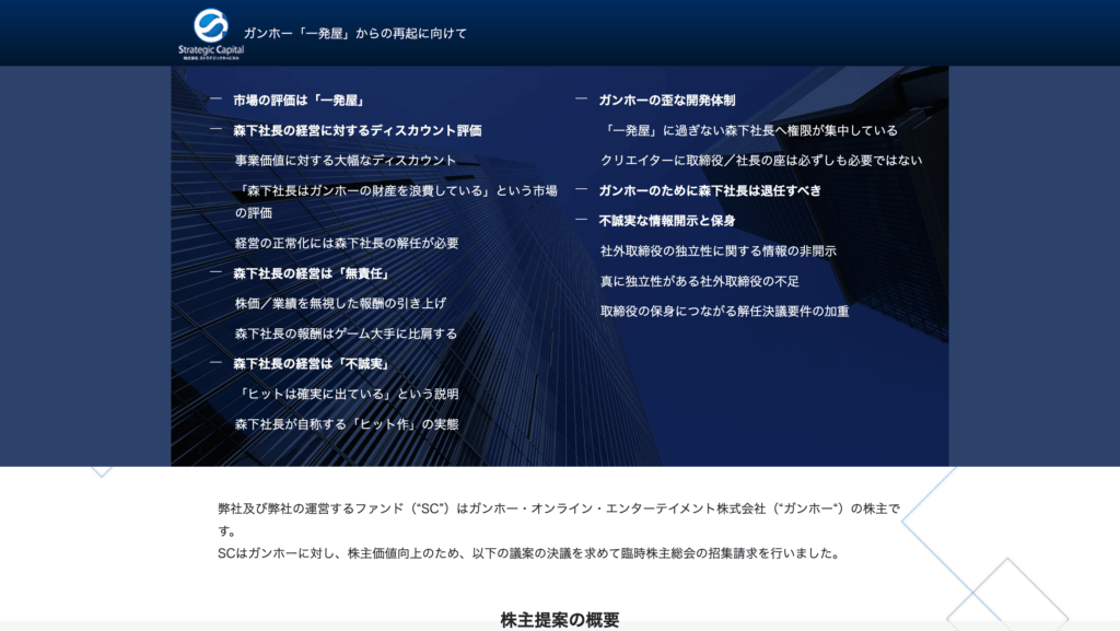 これを見ると、ストラテジックキャピタルとガンホー経営陣の争いはこれで終わりではなく、しばらくの間は続くのかもしれません。